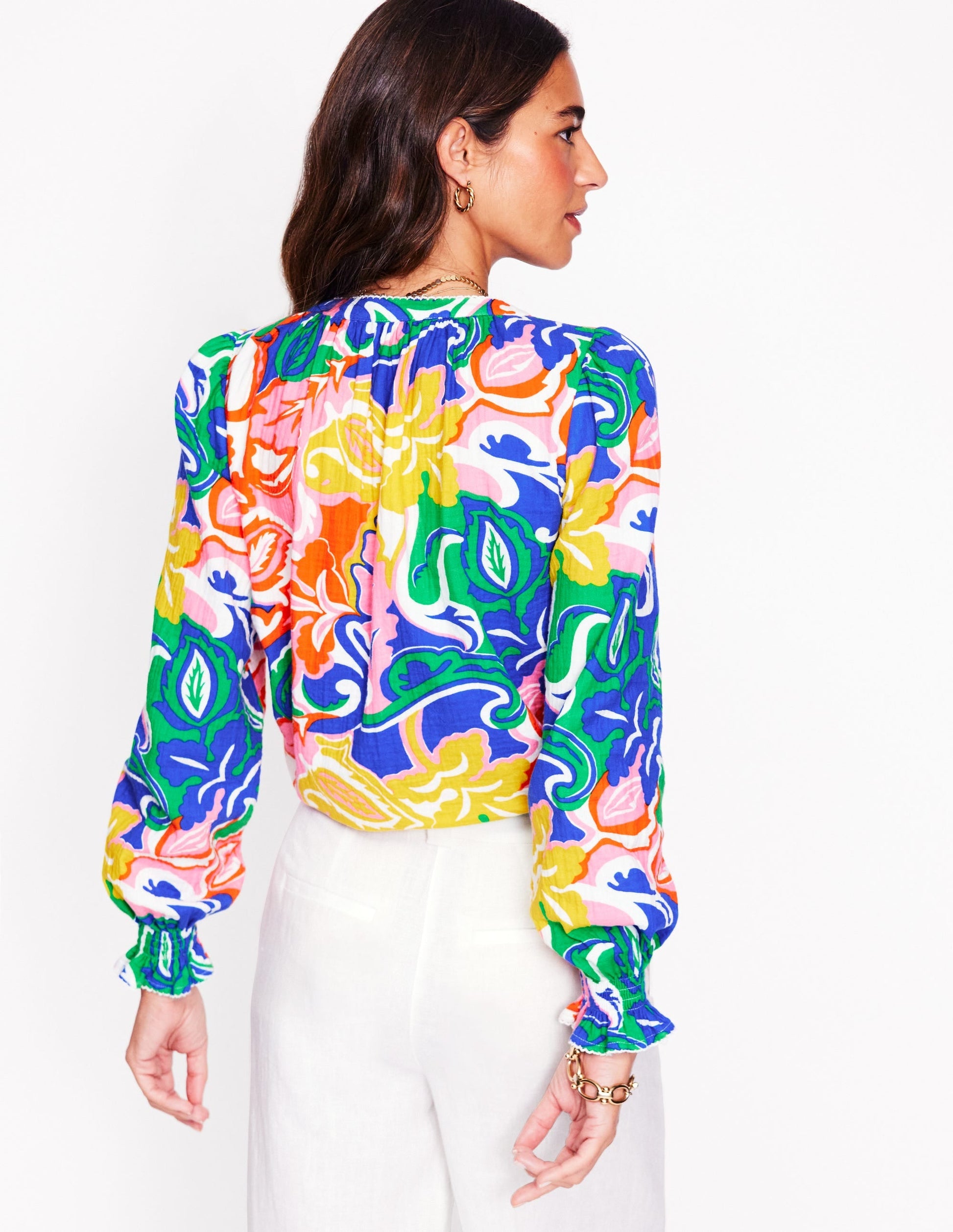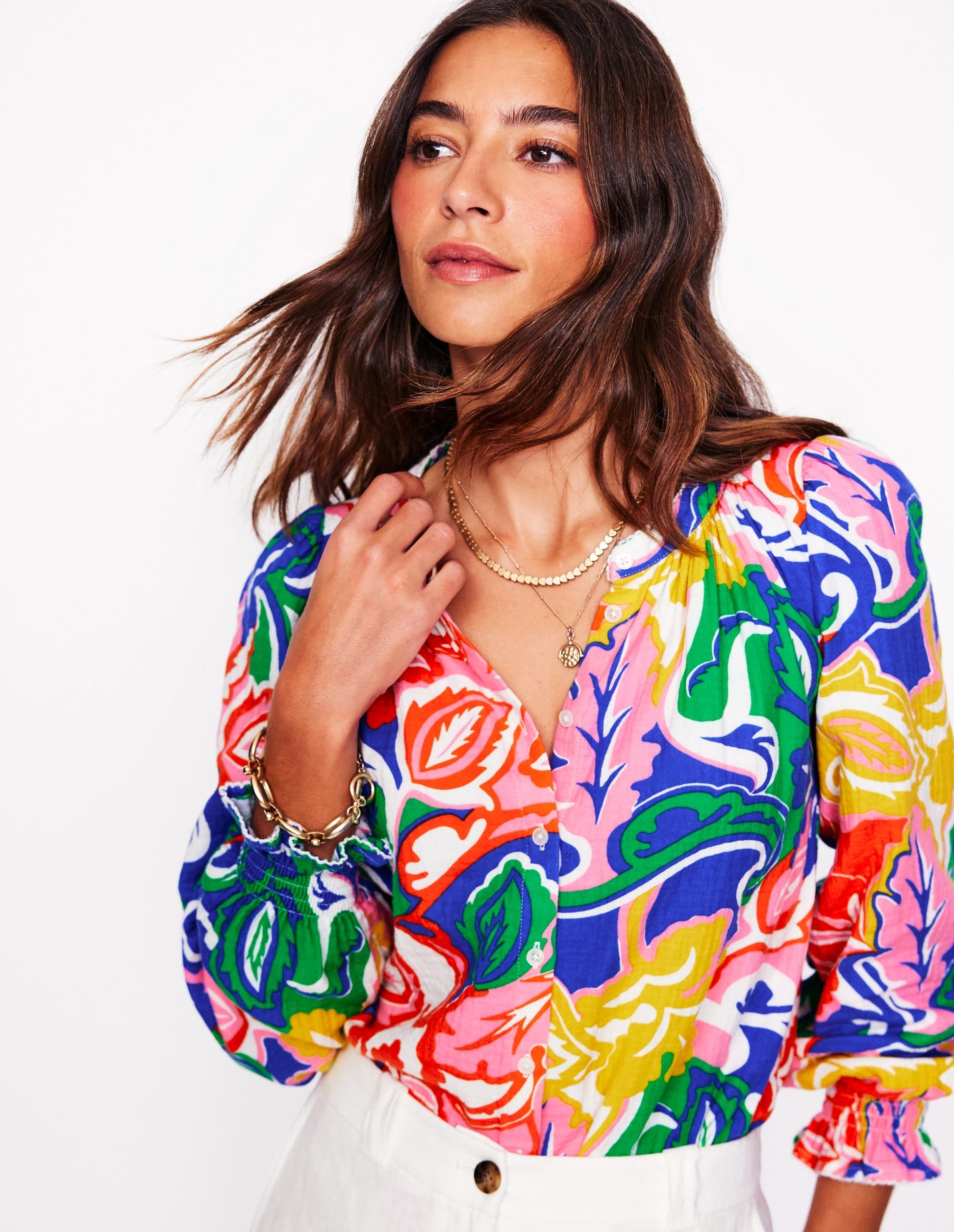 Evie Double Cloth Top-Multi, Foliage Twirl