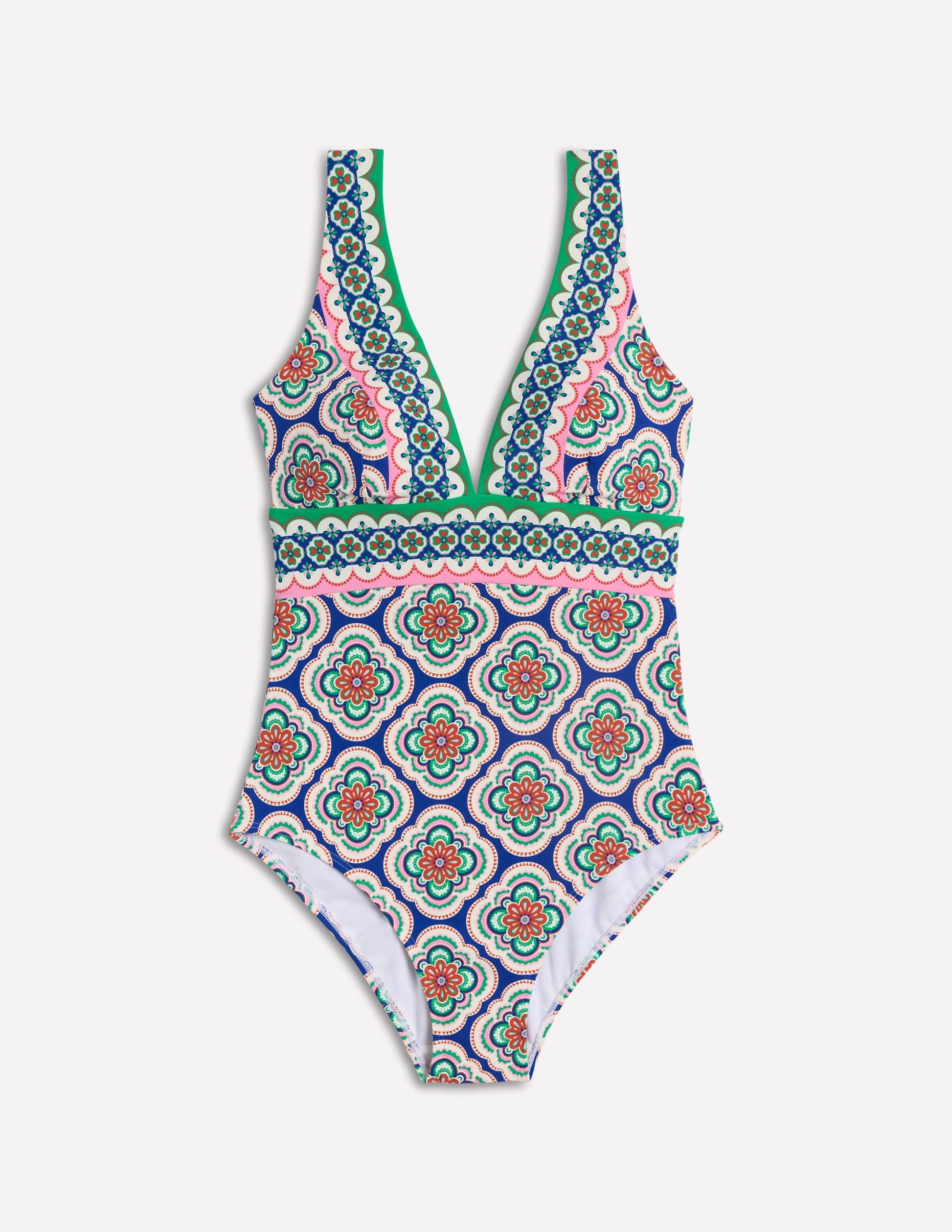 Porto V-Neck Swimsuit-Bright Blue, Botanic Blush