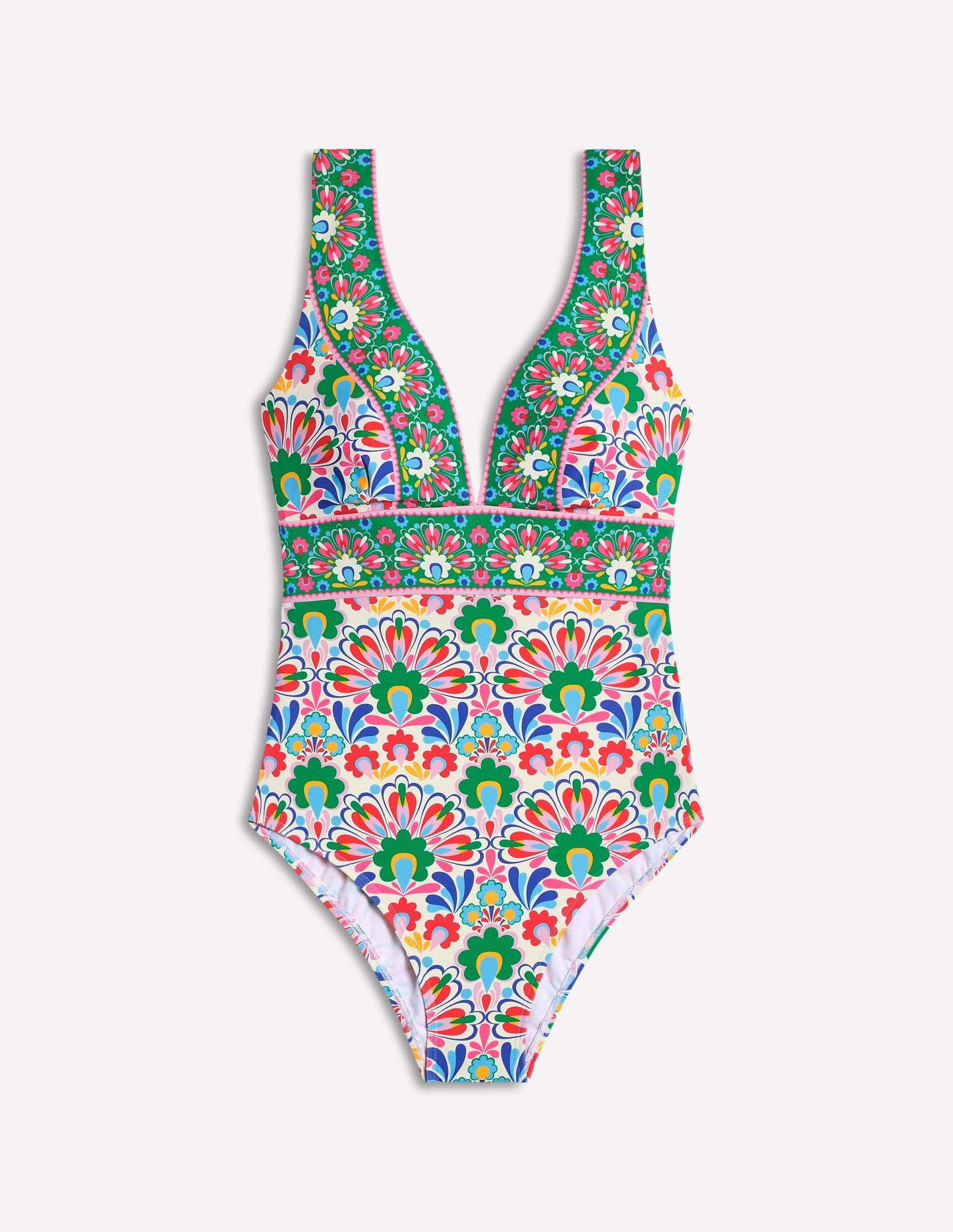 Porto V-Neck Swimsuit-Multi, Decorative Dandelion