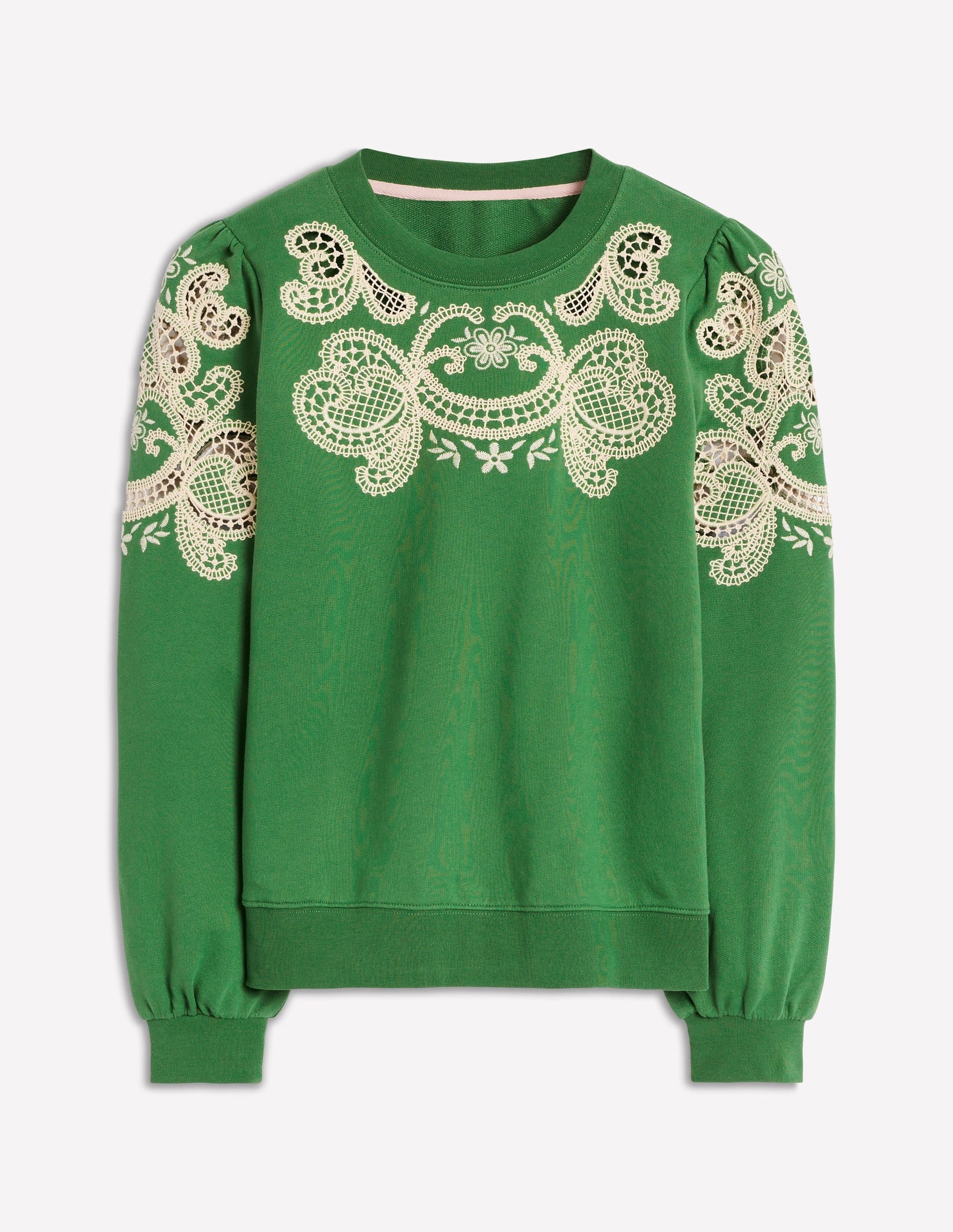 Puff Sleeve Cutwork Sweatshirt-Paradise Green