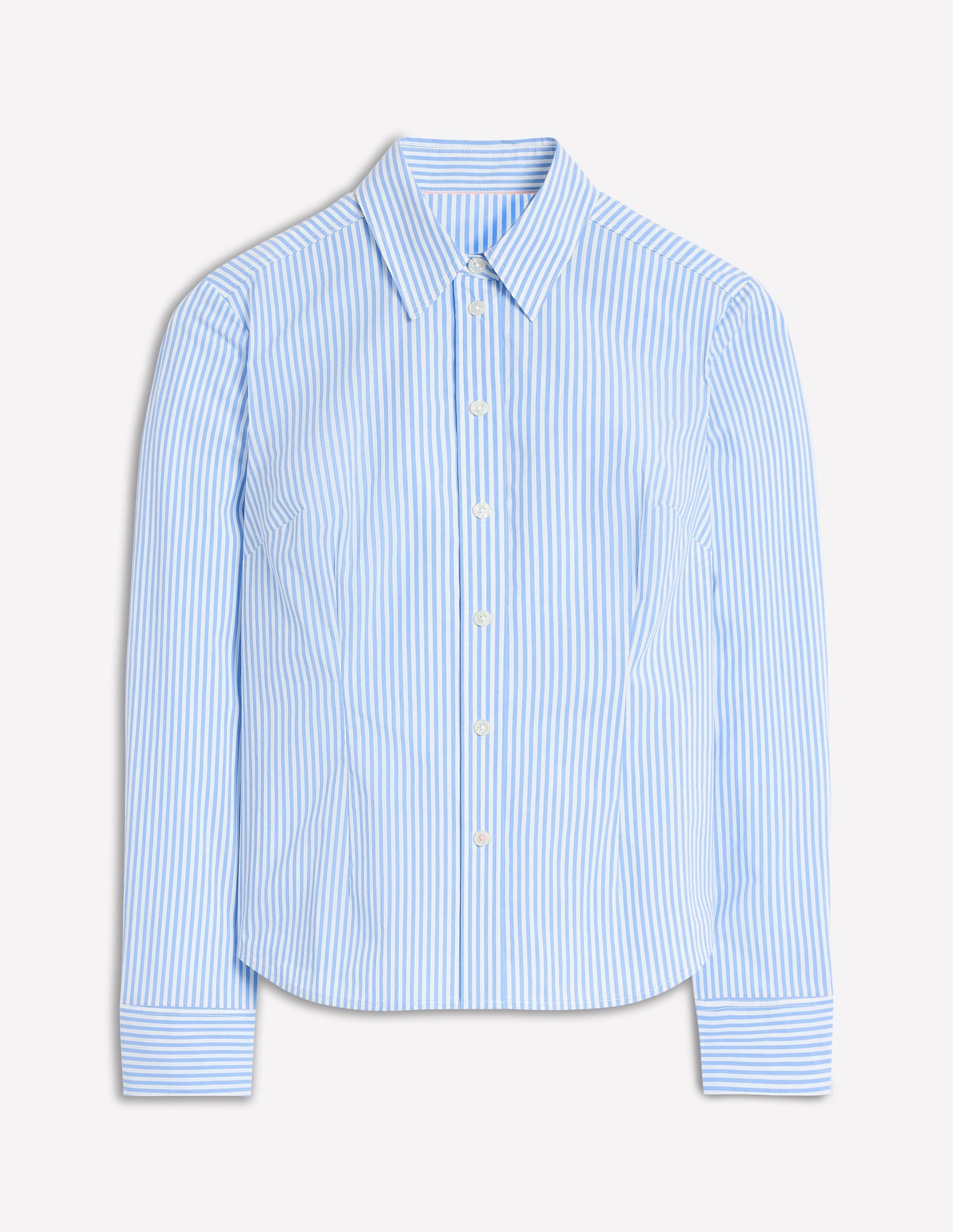 Saskia Stretch Cotton Shirt-Forget Me Not, Ivory Stripe