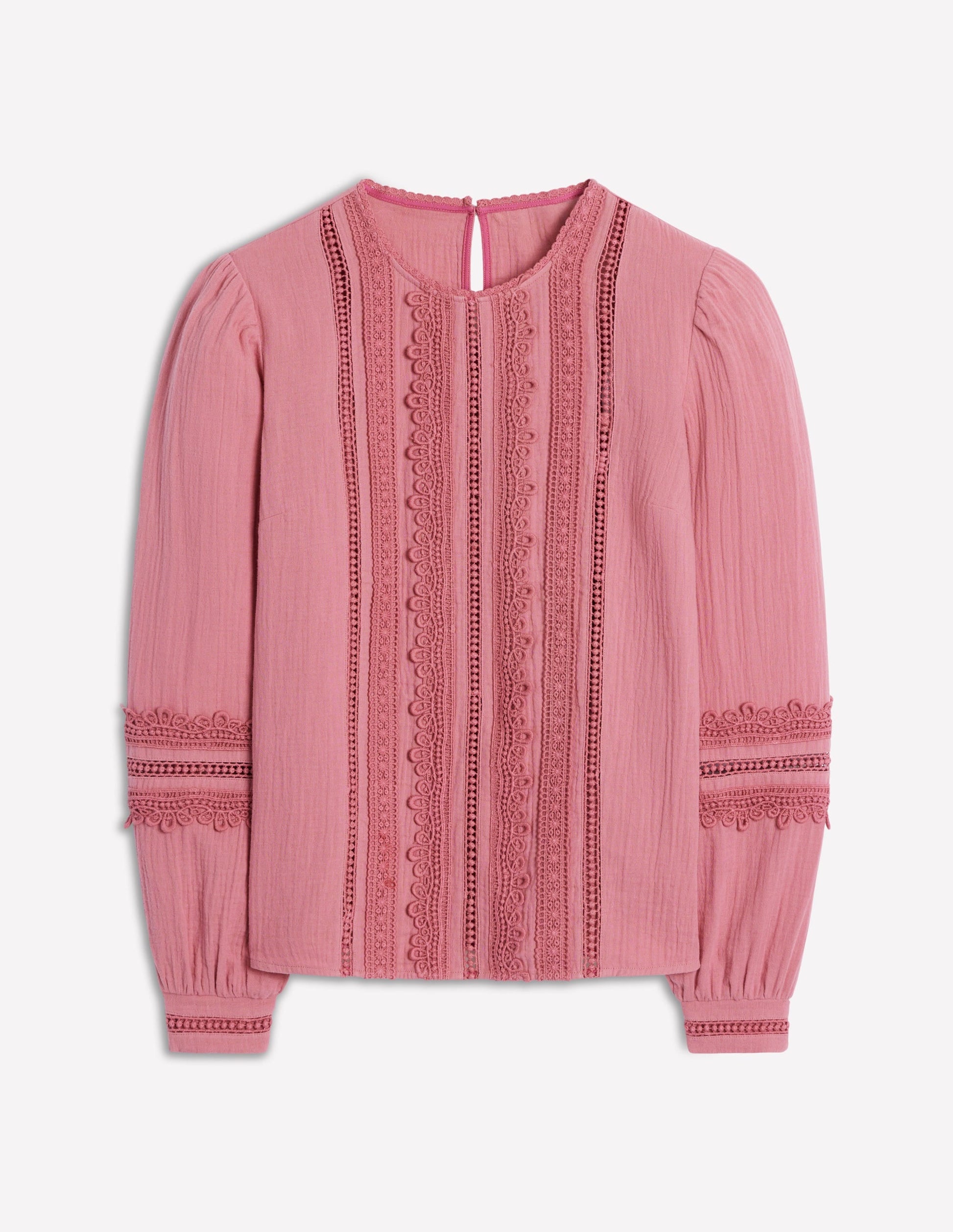 The romantic lace trim on this top will give you butterflies. But it's the soft texture. breathability and lack of ironing that will keep you'll together long after the summer fizzles out.