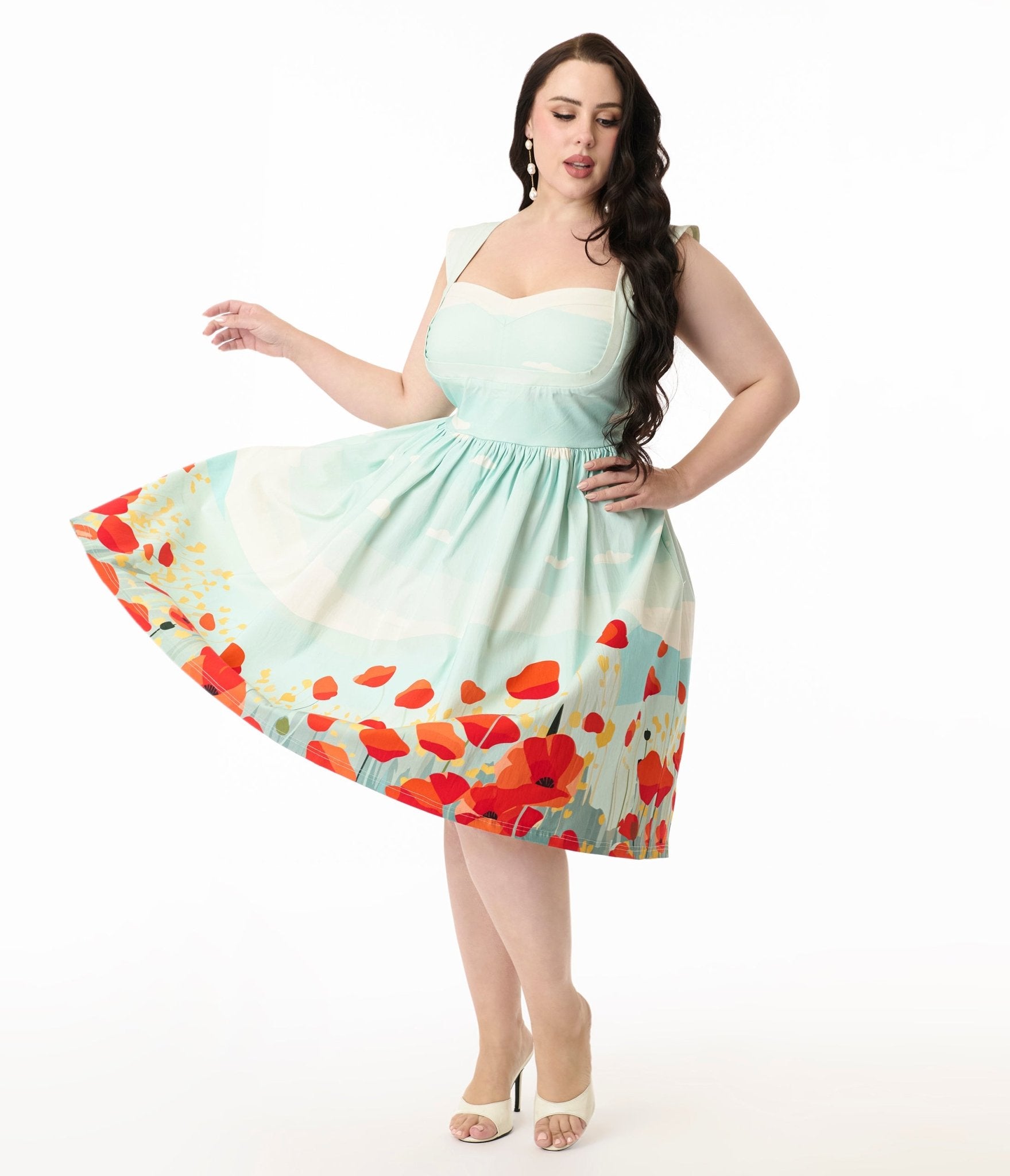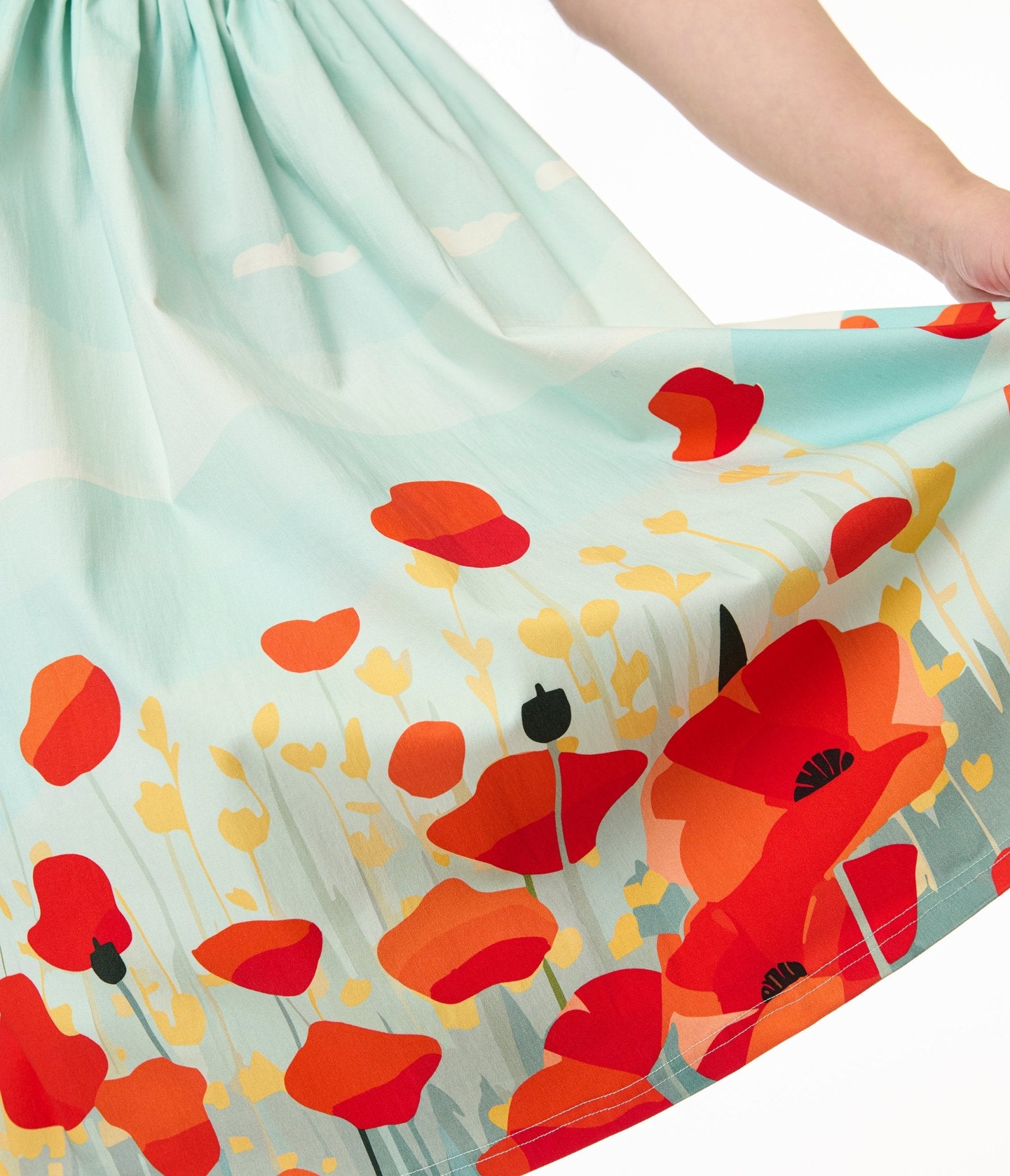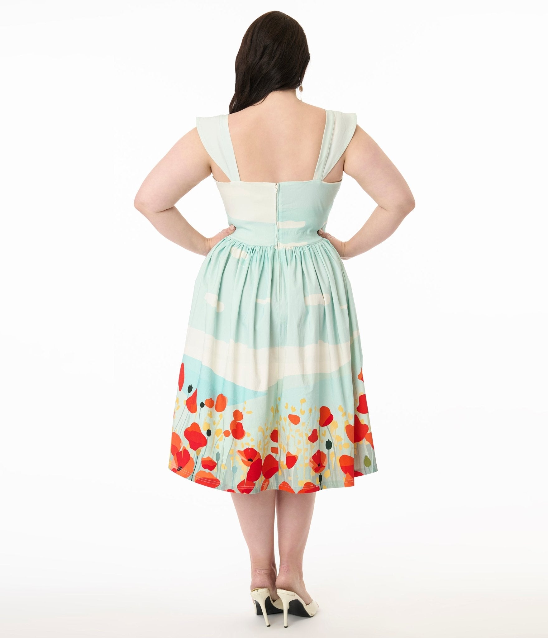 Unique Vintage Plus Size Blue Sky & Poppy Field Sleeveless Swing Dress